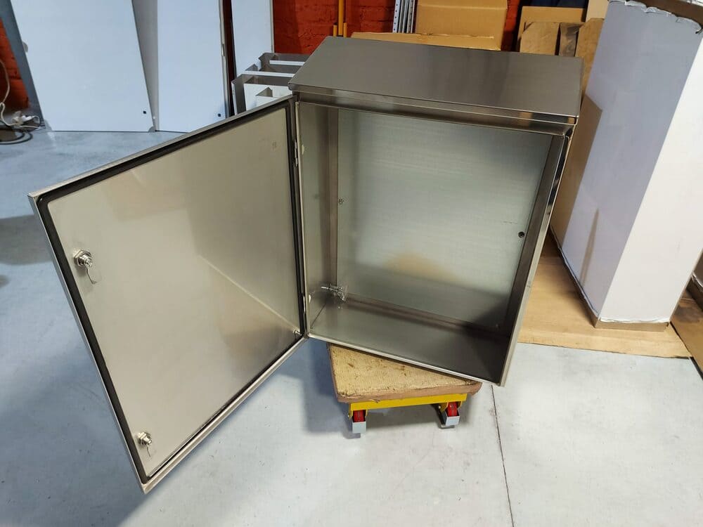 Электромонтажные щиты серии NVsp с наклонным верхом и козырьком. Размер указан по размеру двери! Угол наклона 13°.