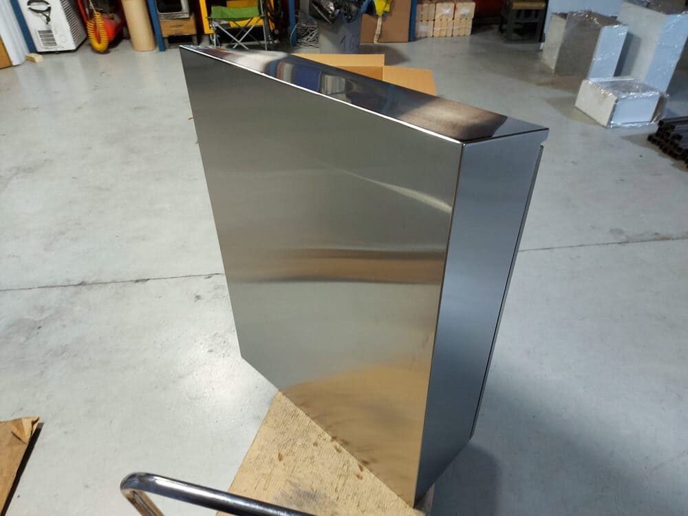 Серия Наклонный верх с козырьком: Заводская сатинированная нержавеющая сталь AISI304 зерно шлифовки P400 с дополнительной полировкой, включает в себя полировку сварных швов до зеркального блеска с плавным переходом в сатинирование, полировку внутренней полки и отлива до зеркального блеска. Качество премиум