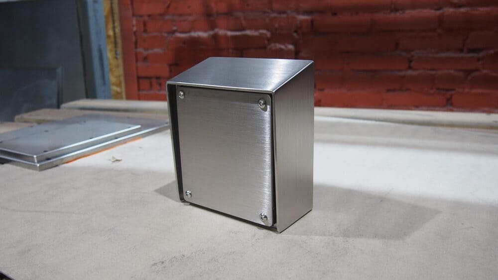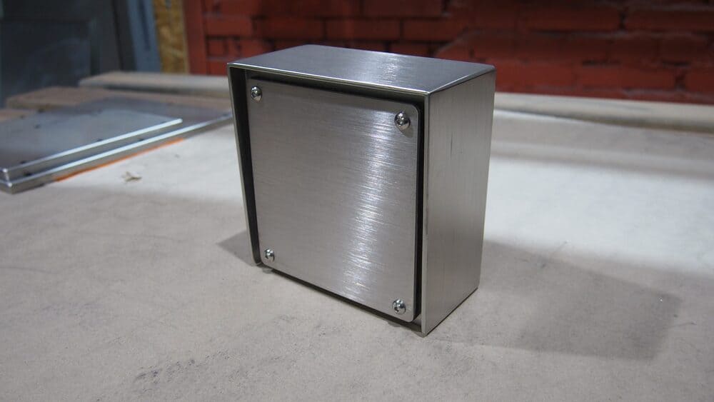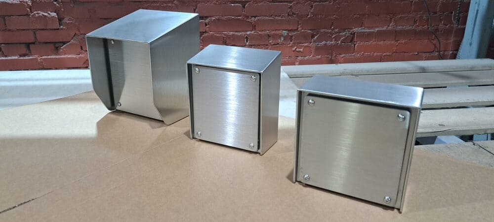 Серия Клеммные коробки: Нержавеющая сталь AISI304 зерно шлифовки P120 направленное (Сатин), включает в себя матирование внутренней полки и отлива. уплотнитель самоклеющийся неопрен CR.